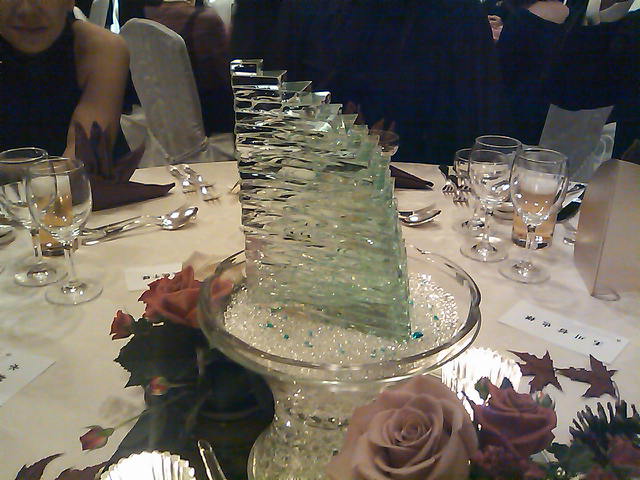 こんな形をしたガラス製の置物がテーブル中央にありました。