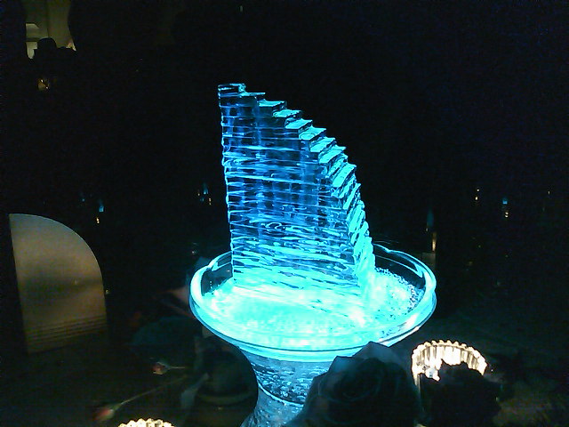 そしてキャンドルサービスの時間になると、新郎新婦がその置物にこれまた怪しげな色をした液体をかけました。