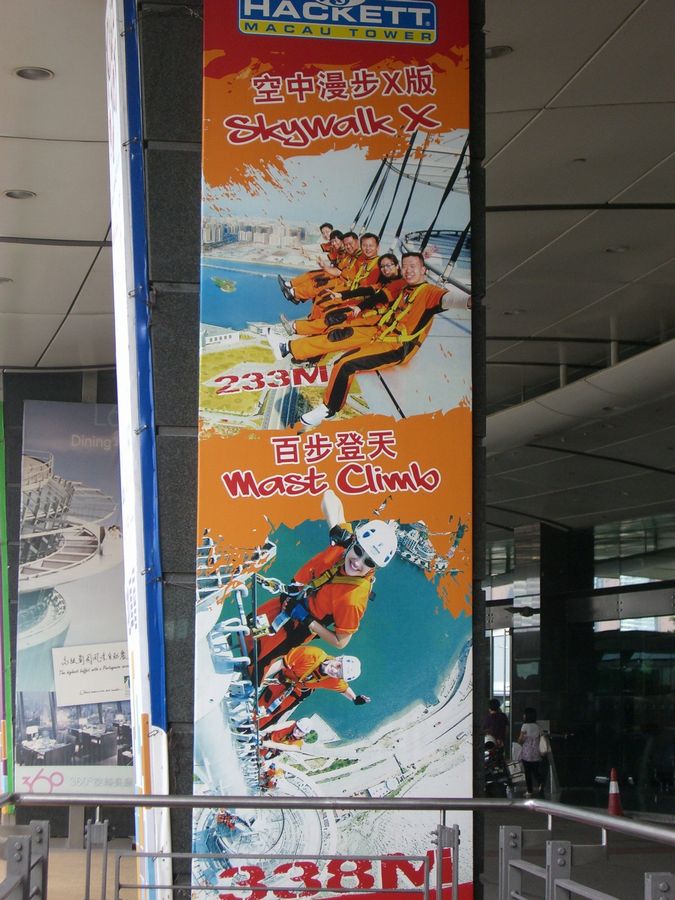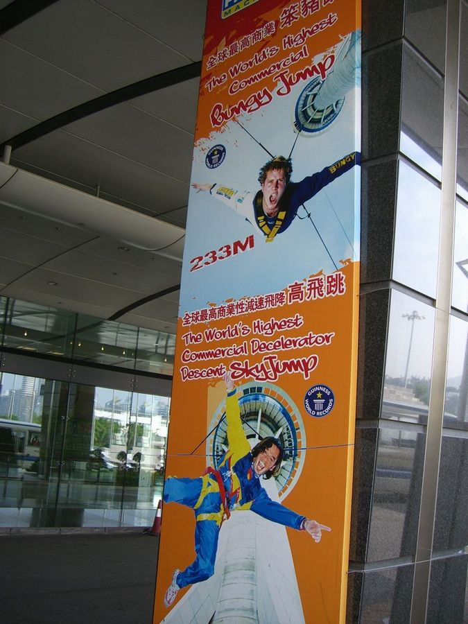 周りからは「馬鹿と煙は何とやら…」など色々言われましたが、ギネスにも認定されているマカオタワーからのバンジージャンプは是非体験したいものでした。