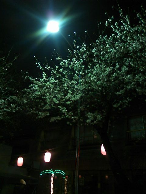 携帯での画像なのであまり綺麗には撮れませんでしたが、夜桜もいものです。