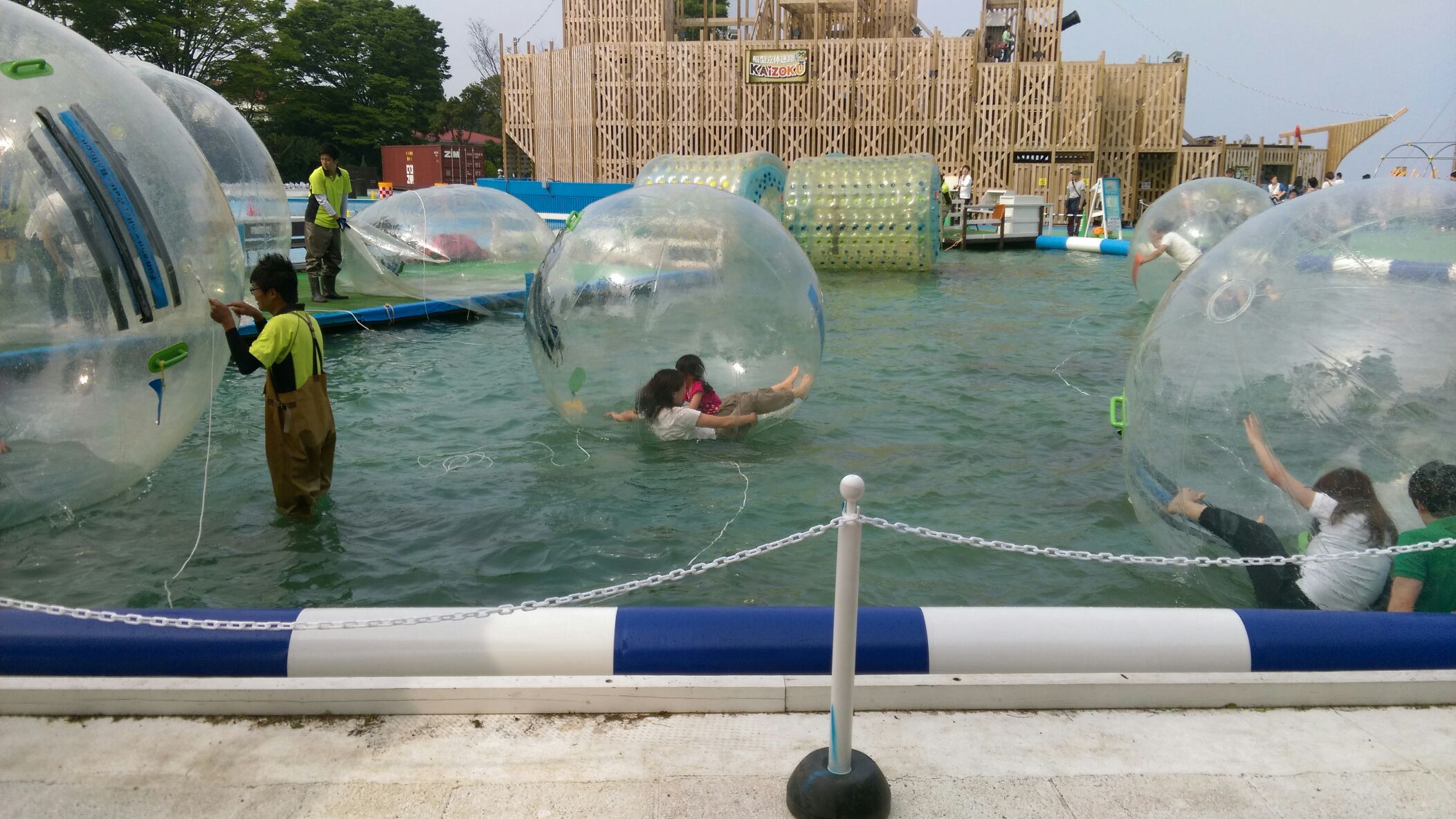 中に2~3人で入るのですが、一人が中で歩いたり暴れるともう一人はなすすべもなく転がりまくり、その様子は本当にヤヴァイですw