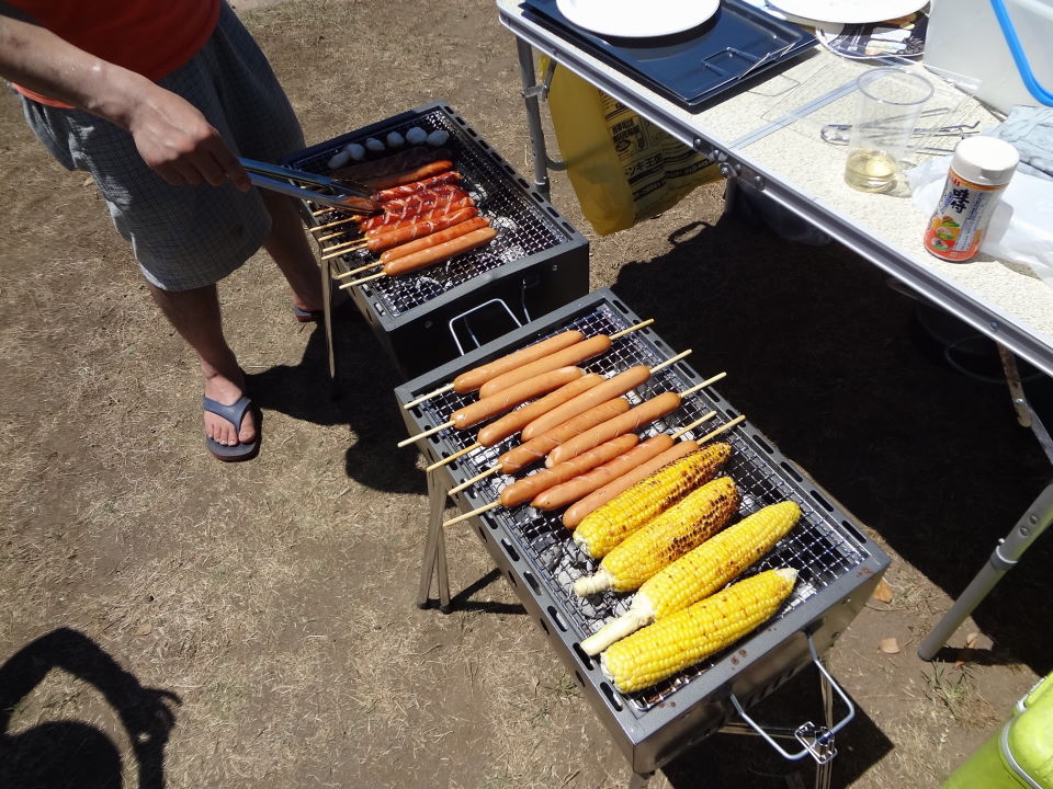 肉、焼き鳥、もろこし、フランクフルト、生ビール、もう最高ですなw
