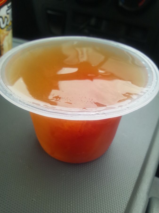 ゼリーの中に皮を剥いたトマトが丸ごと1個入っています。