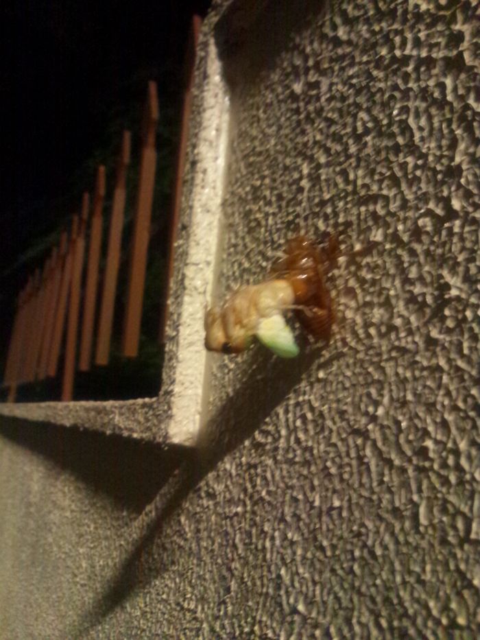 先日家の前の壁で、今まさに脱皮をしている蝉を見かけました。
